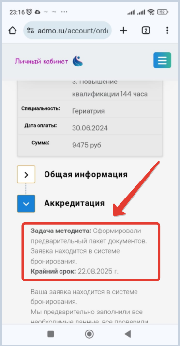 Здесь описано как работает наш центр аккредитации АДМО: как оплатить, что будет происходить после этого, как наши специалисты будут с вами взаимодействовать, и самое главное - как вы узнаете о том что успешно прошли эту процедуру. Обратите особое внимание на систему, благодаря которой вы сможете всегда быть в курсе происходящего с вашей заявкой.