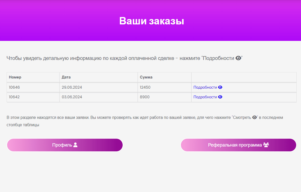 Сразу после оплаты и до самого момента исполнения наших обязательств вся информация доступна в личном кабинете пользователя.